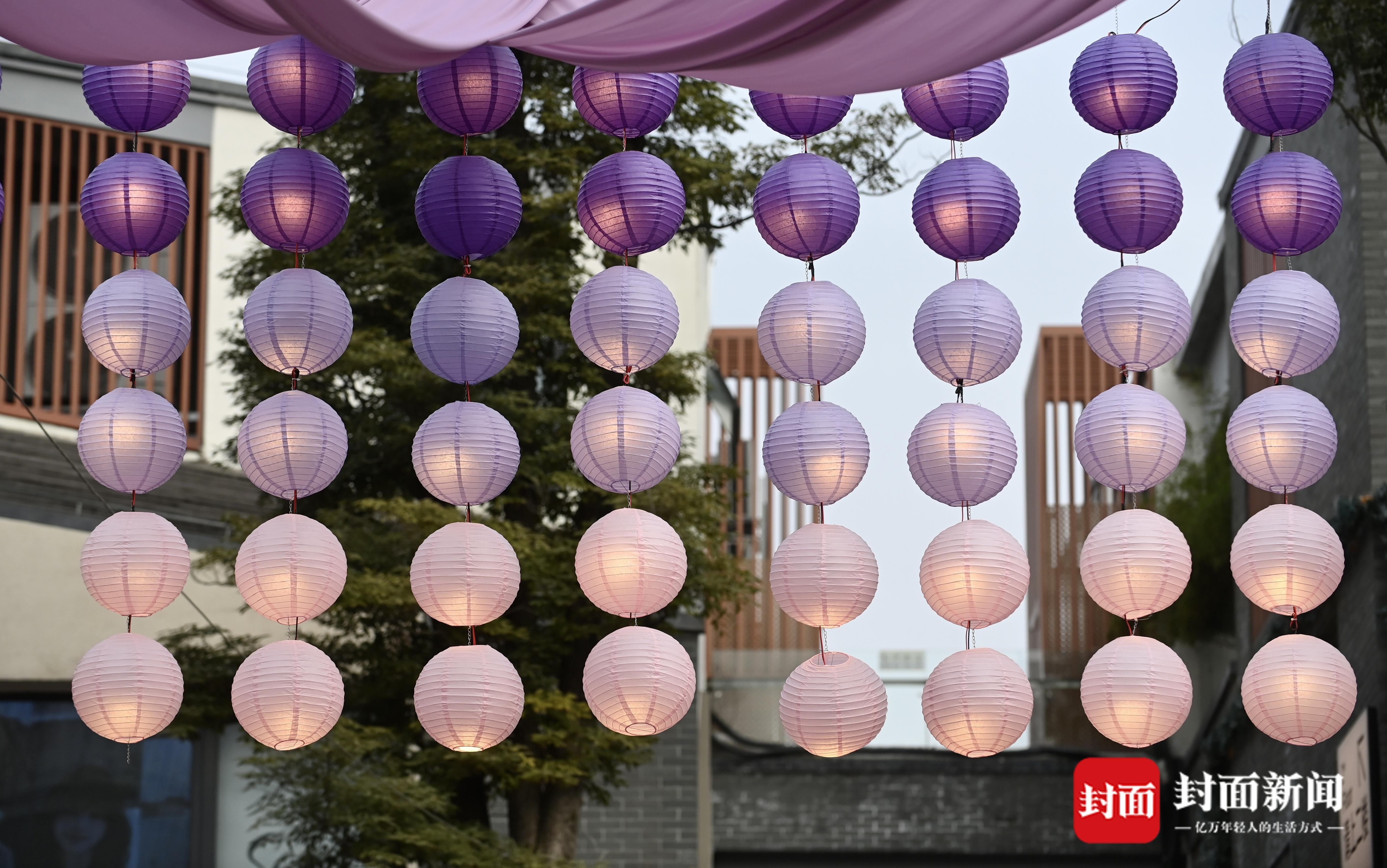 成都铁像寺水街挂上紫色灯笼。
